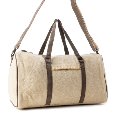 Designed for the woman who moves with purpose and style, this western weekender bag combines rustic charm with practical functionality. Crafted from up-cycled canvas and lined with 100% cotton, it offers both durability and eco-conscious appeal. The bag features genuine leather straps and trim, adding a touch of rugged elegance to its clean, natural silhouette. Inside, you’ll find a roomy compartment with a secure inside zipper pocket, perfect for keeping essentials organized while on the move. Whether you’re heading to a country escape or a weekend rodeo, this weekender bag is the ideal travel companion.